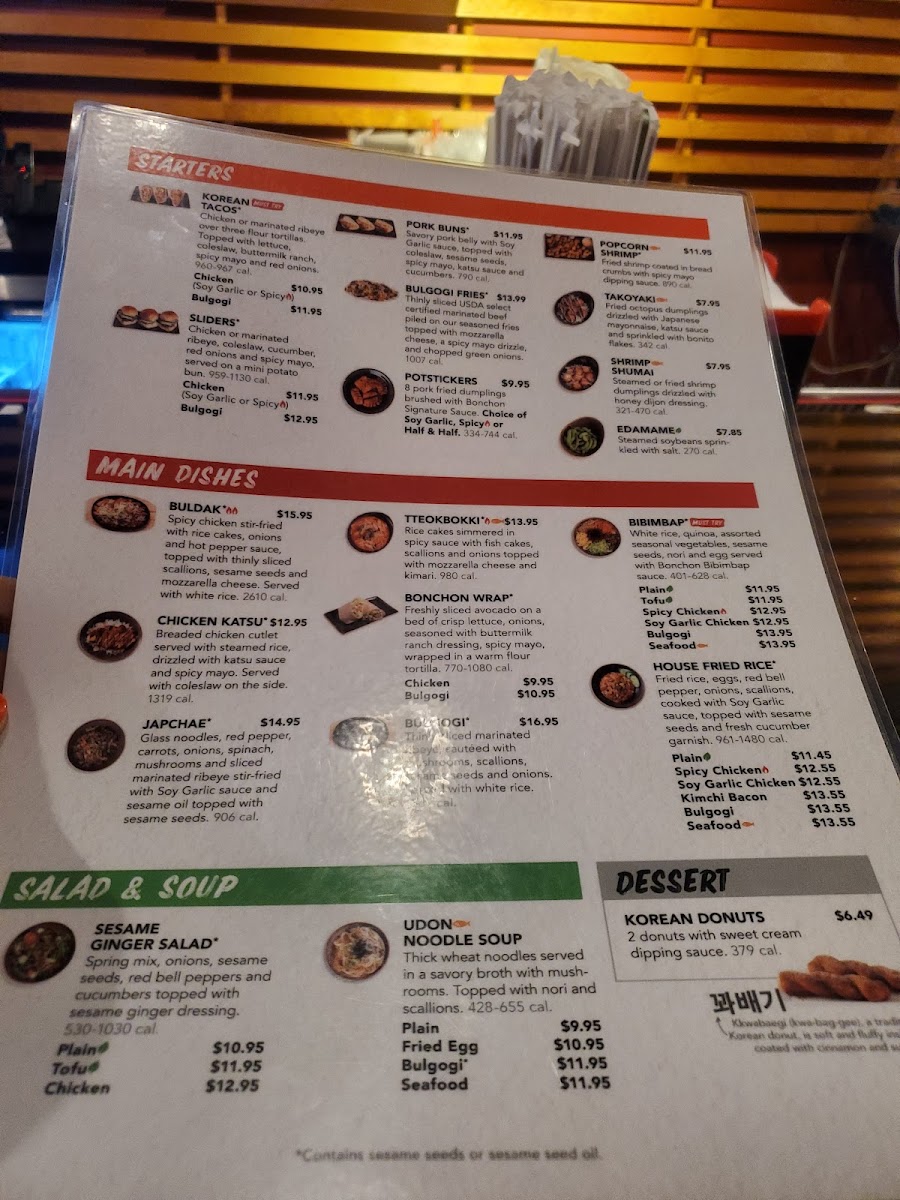 Bulgogi piled on our seasoned fries and topped with mozzarella, scallions and a drizzle of spicy mayo. (*Contains sesame seeds or sesame seed oil.)
