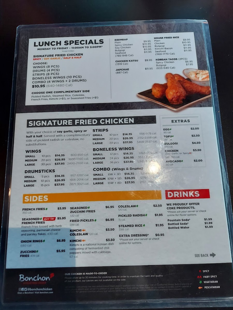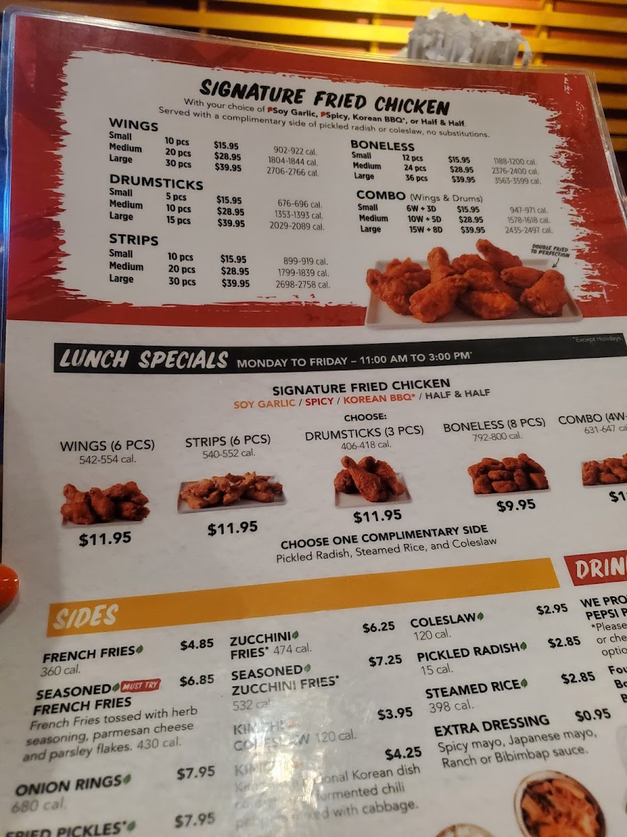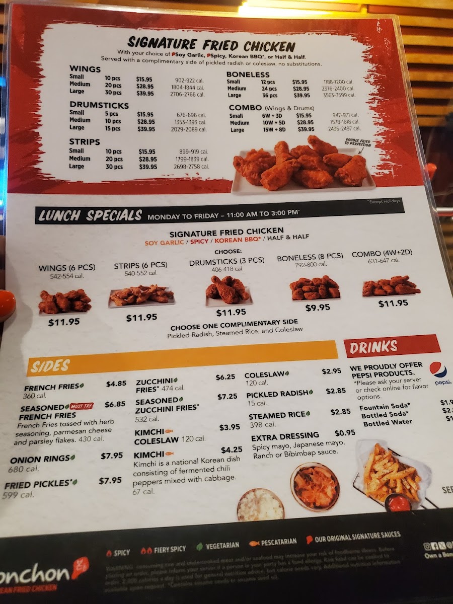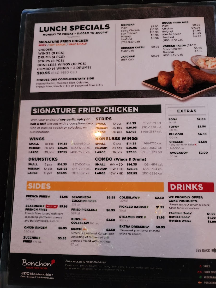 All your favs! 2 drums, 4 wings, Bulgogi Fries, Pork Potstickers, Korean Street Corn and Coleslaw. Your choice of Bonchon signature sauce and a dipping sauce. Feeds 2-3